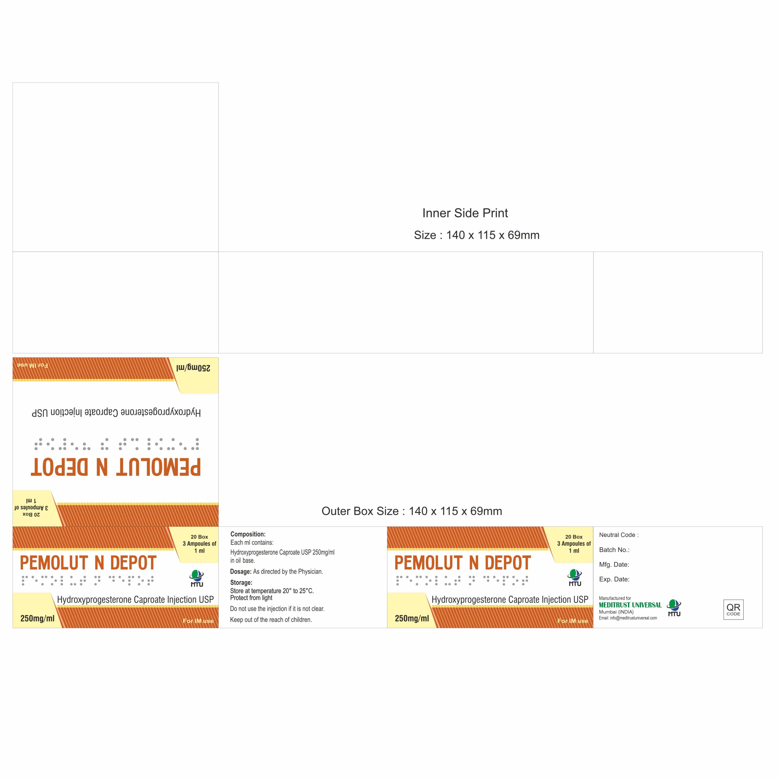 INDICATION: Hydroxyprogesterone caproate injection IP 250 mg is indicated for preventing recurrent premature labor in pregnant women with a specific medical history and, in non-pregnant women, for certain gynaecological disorders and advanced uterine cancer.